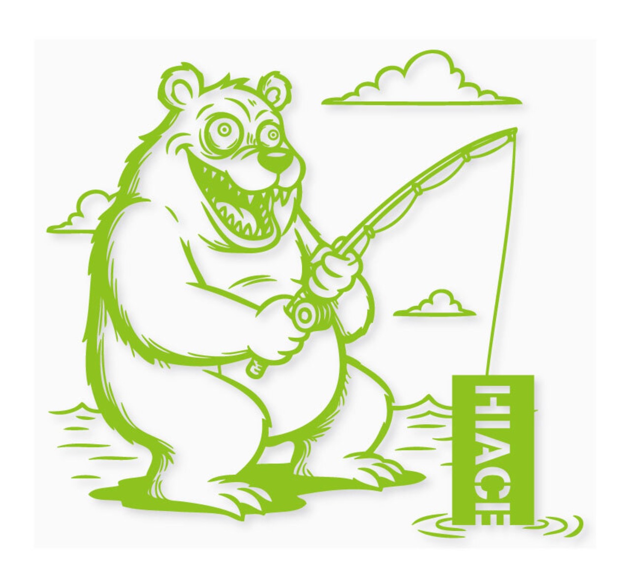 ハイエースに適合 グリムベア 釣り クマ アウトドア キャンプ カッティングステッカー 防水 耐候性 転写シール