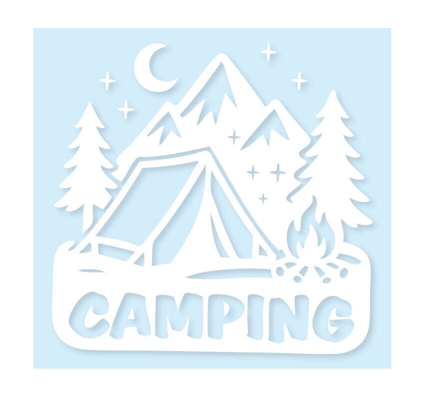 キャンピングステッカー テント 焚き火デザイン