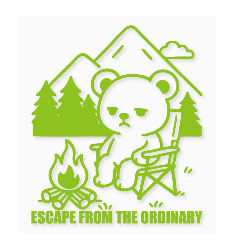 無表情のクマ 焚き火 くま 熊 キャンプ アウトドア カッティングステッカー
