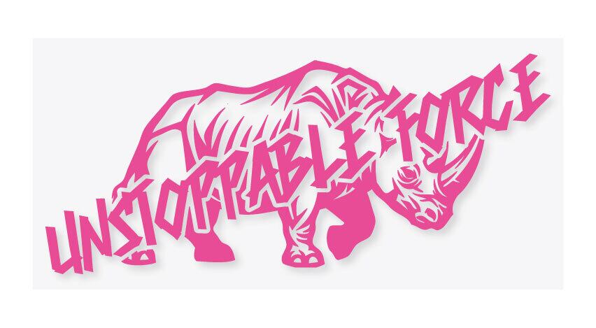 野生の力強さを感じさせるサイのシルエットと、エッジの効いた英字ロゴが融合したデザインは、リフトアップした車体やマッドタイヤとの相性も抜群。愛車に「タフで妥協しない」という強いメッセージを添えたいオーナー様にぜひ貼っていただきたい一枚です。
