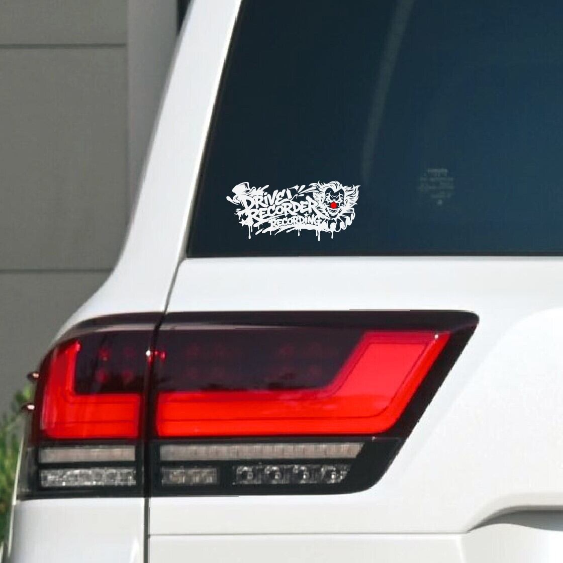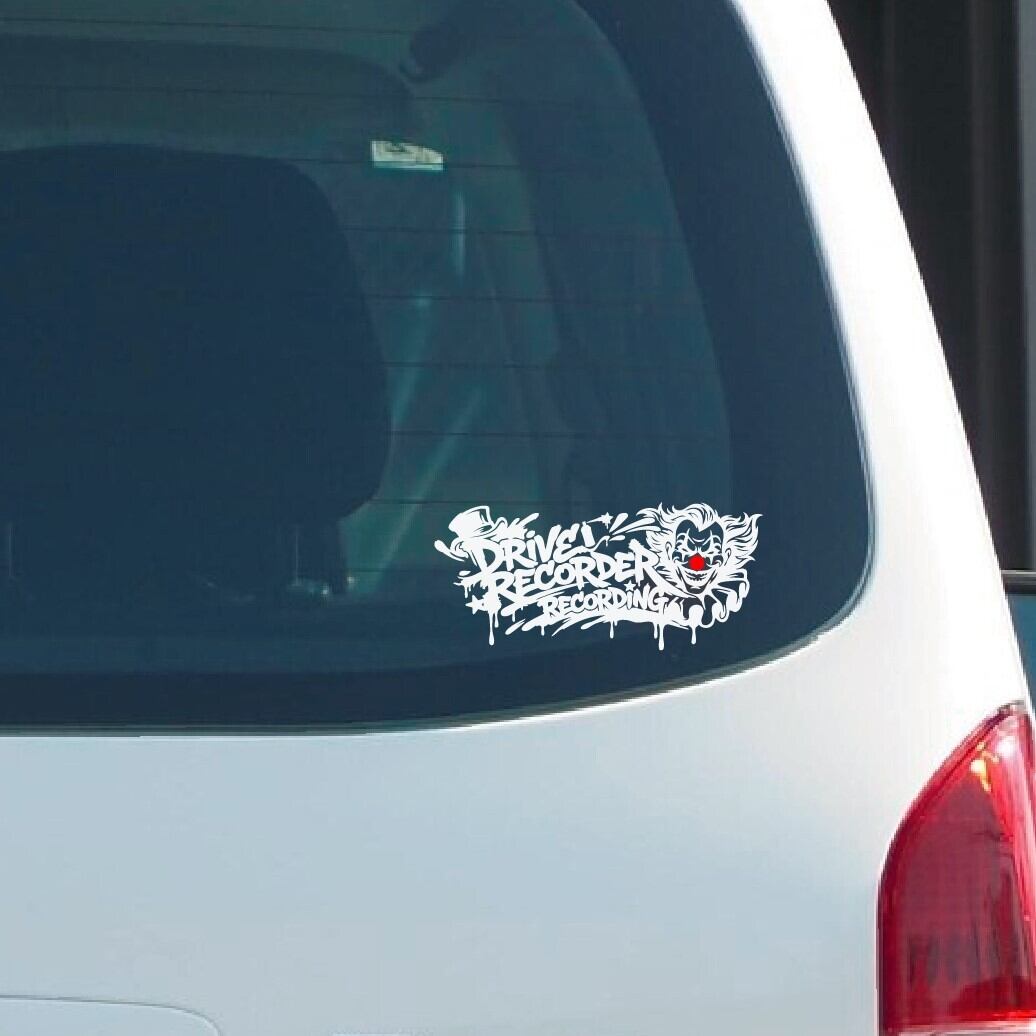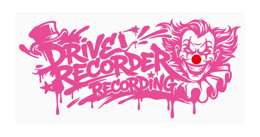 アメリカの路地裏に描かれたグラフィティのようなスプレーアート調のフォントに、不敵な笑みを浮かべるピエロをミックス。実用性というよりも、デザイン特化型のドライブレコーダーステッカーです。
